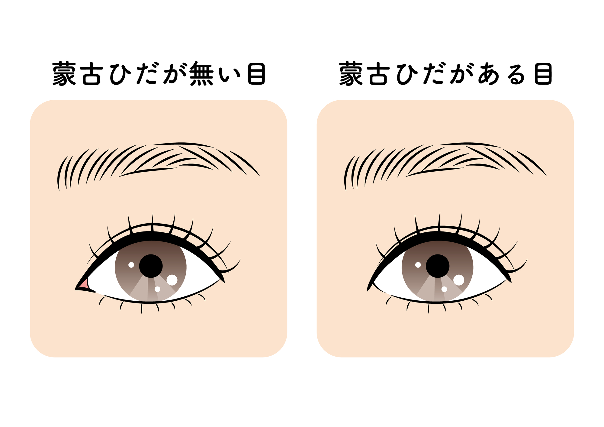 蒙古襞とは、目頭の内側にかぶさるように存在する皮膚のひだのことを言います。アジア人に多く見られる形状で、生まれつき備わっている構造です。