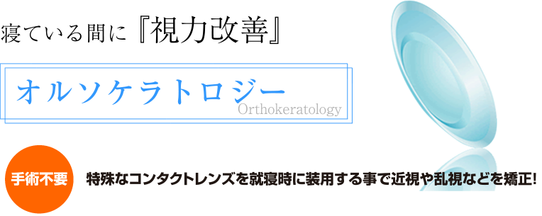 オルソケラトロジーとは、一般的なコンタクトレンズとは異なり、寝ている間に特殊な形状をしたレンズを装用する事で角膜の形状を平坦化して、近視や乱視を矯正する方法です。