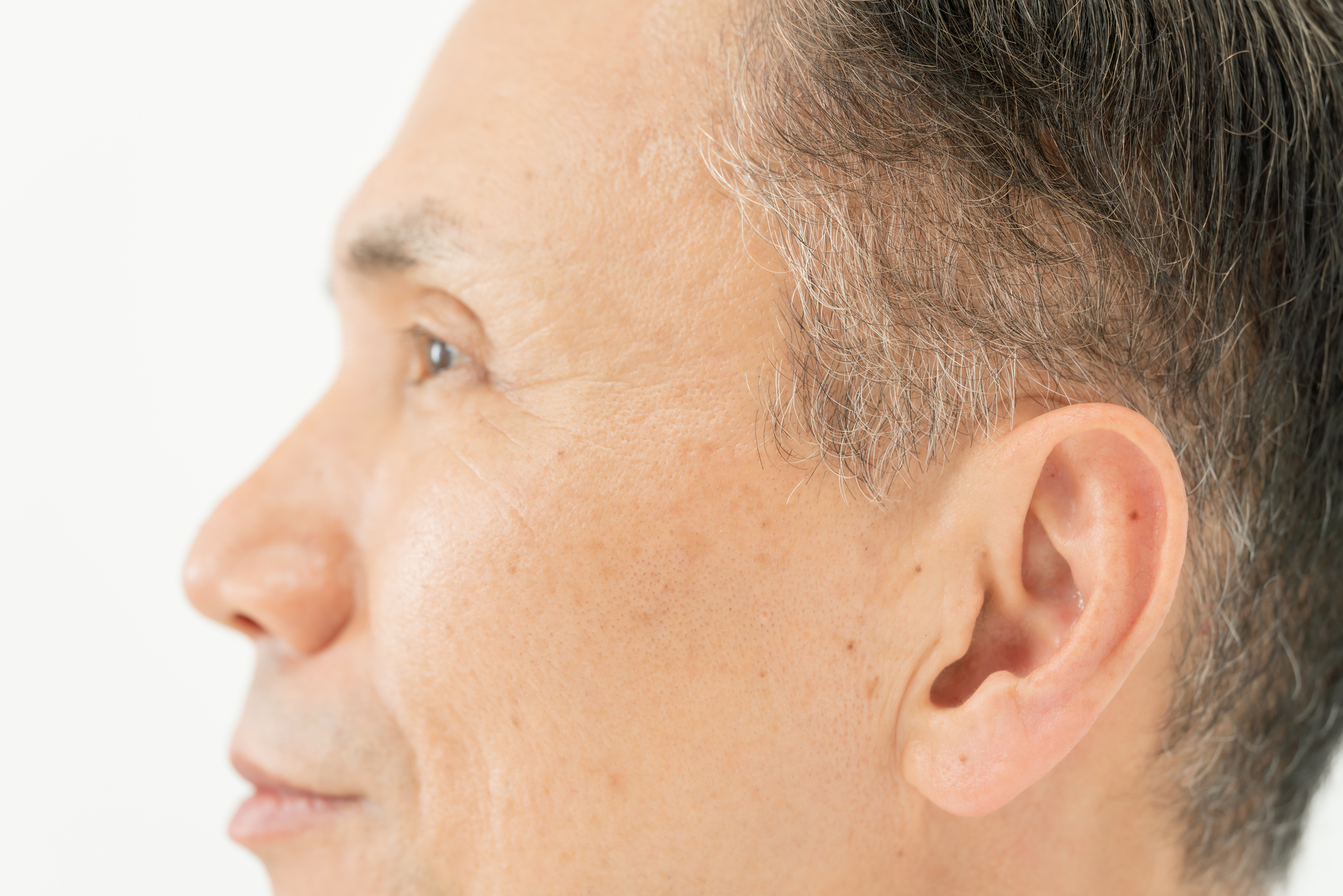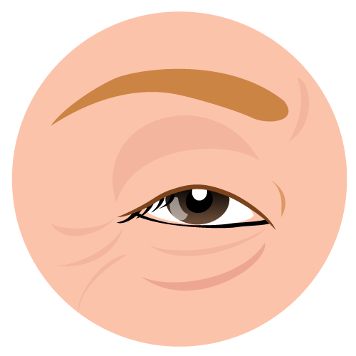 上まぶたの皮膚が余り、眼瞼下垂に見える状態。加齢や皮膚質の変化が大きく関与します。